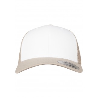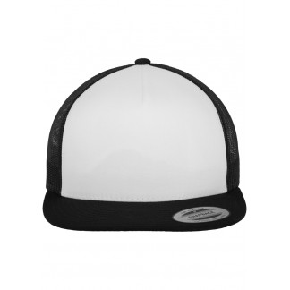 This trucker cap offers a time-proven, dual design: its front is made from cotton, the back from transparent, white polyester mesh. Thanks to the smart, integrated technology the cap guarantees optimal wearing comfort: next to the Flexfit ribbon a color-matched snapback closure stands ready for individual size adjustment. The trucker cap style is rounded off by a pre-bent visor with eight decorative seams.